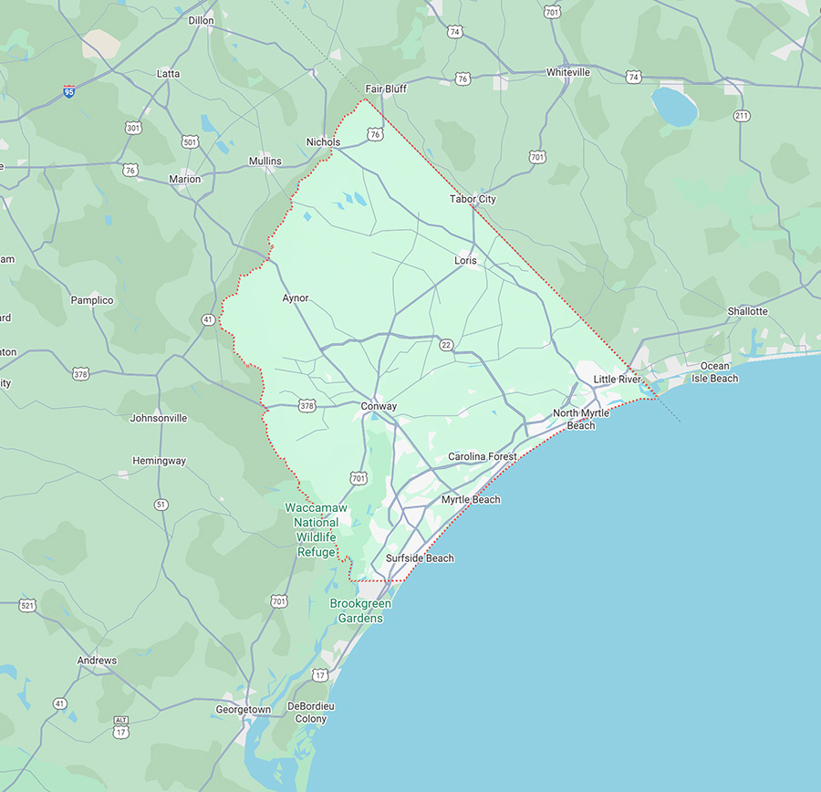 Complete with custom design, full setup, and delivery — all included for customers in Horry County. Is your home or business outside of Horry County? No problem! We will still deliver up to 20 miles outside of Horry County for an additional fee.